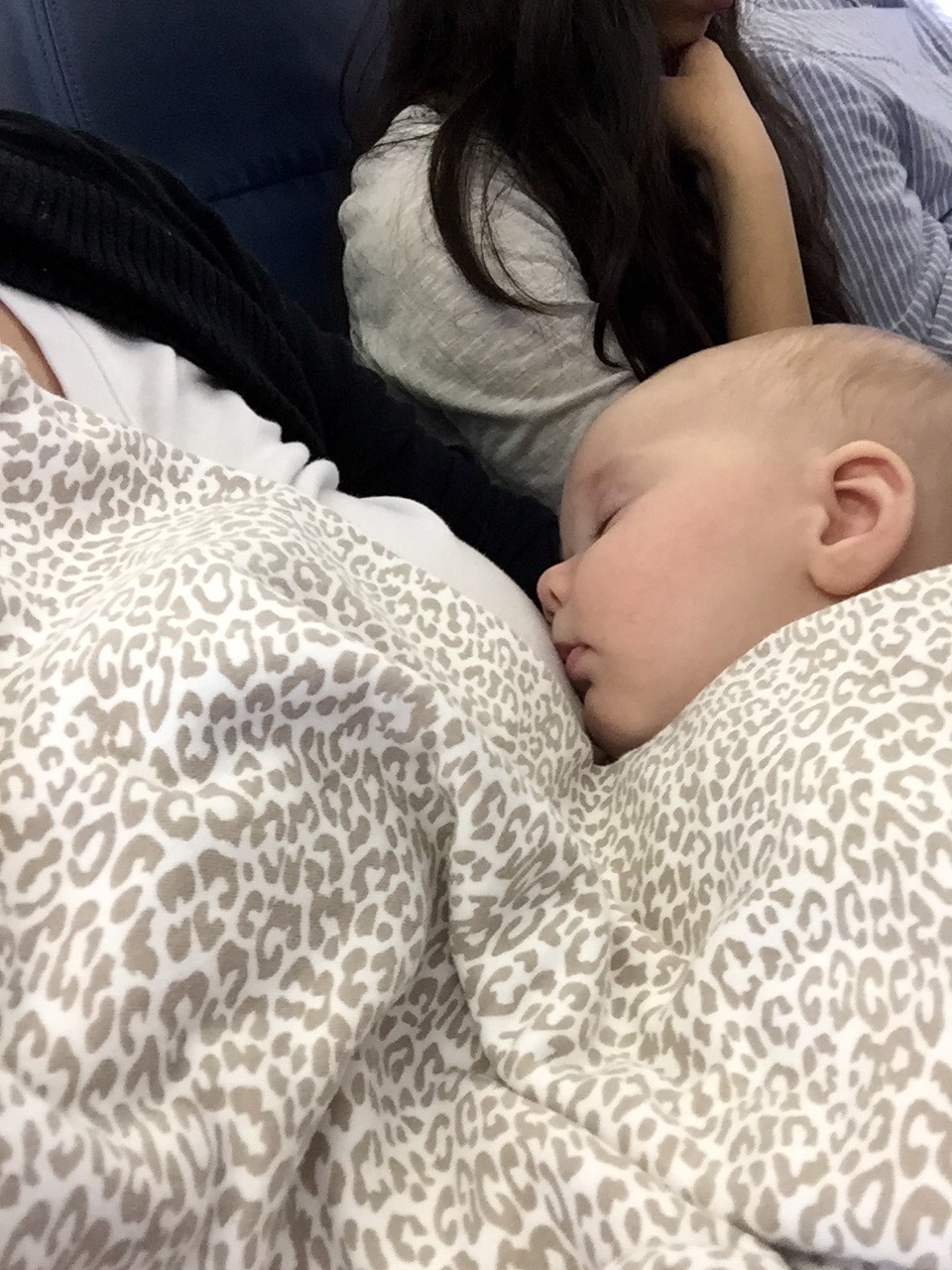 After the success of the first flight I was a bit less stressed about how Ziva would fare on the flight home. What I didn’t plan for was an extremely long time waiting on the runway before take off. I started nursing Z as we pulled away from the gate, but by the time it was our turn to take off she was already done and I couldn’t move quickly enough to grab a pacifier or something else for her to suck on as we took off. Word of advice- have your back up soothers on the ready or baby will absolutely cry. Being the chill baby she is, it was only about 172 miles of crying (according to the track your flight app on board the plane), but it felt like forever. Once she was settled down it was an easy flight.