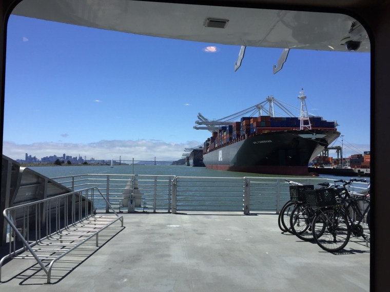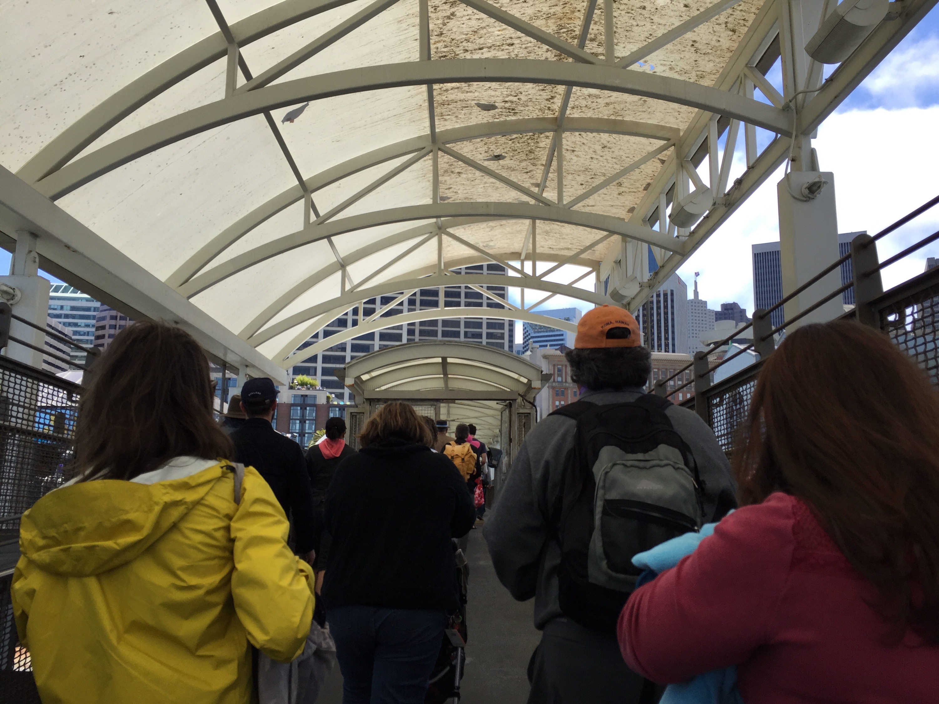 Once the decision was made that we were headed to SF by ferry, it was a mad dash to get from El Cerrito to Jack London square in time for the afternoon boat. We made it with just minutes to spare. The boat wasn’t too crowded and there was plenty of room for us to all sit together in the front with a great view of the ship yards and the slowly approaching San Francisco skyline.